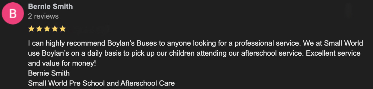 Welcome to Boylan's Buses – your trusted transportation partner in Dublin. We’re dedicated to ensuring every journey is safe, comfortable, and tailored just for you. Whether it’s school transfers, sports events, airport pickups, or special occasions and holidays, we’re here to provide you with exceptional service every step of the way.